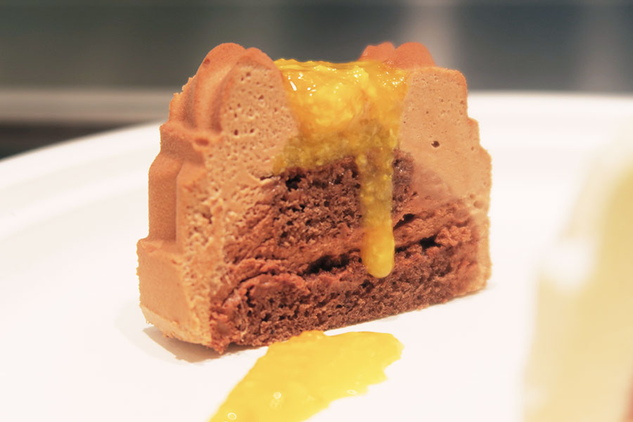 • チョコレートとみかんを合わせた「ムース・ショコラ ミカン」断面(12月15日・阪急うめだ本店)