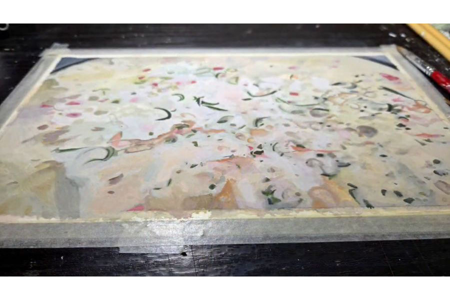 • 筆で丁寧に生地を流していきます。 ※山田めしがさんのX動画より抜粋
