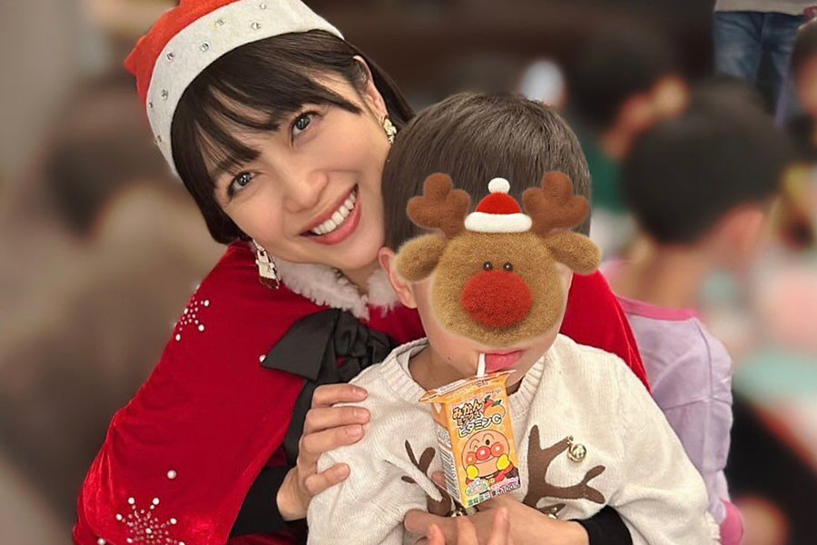 • 新妻聖子さんのInstagramより、昨年のクリスマスパーティーで長男と撮影