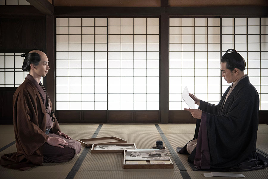 儒学を痛烈に批判したその本を、蔦屋で大々的に売ることをもくろんだ重三郎は、宣長のいる伊勢まで直談判に行く。あまり江戸で広まると、ここまで積み上げた学問を殺されると渋る宣長に対して、重三郎は元老中・松平定信(井上祐貴)の書簡を差し出す。
