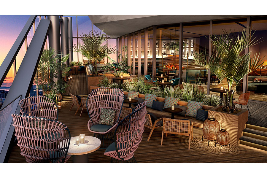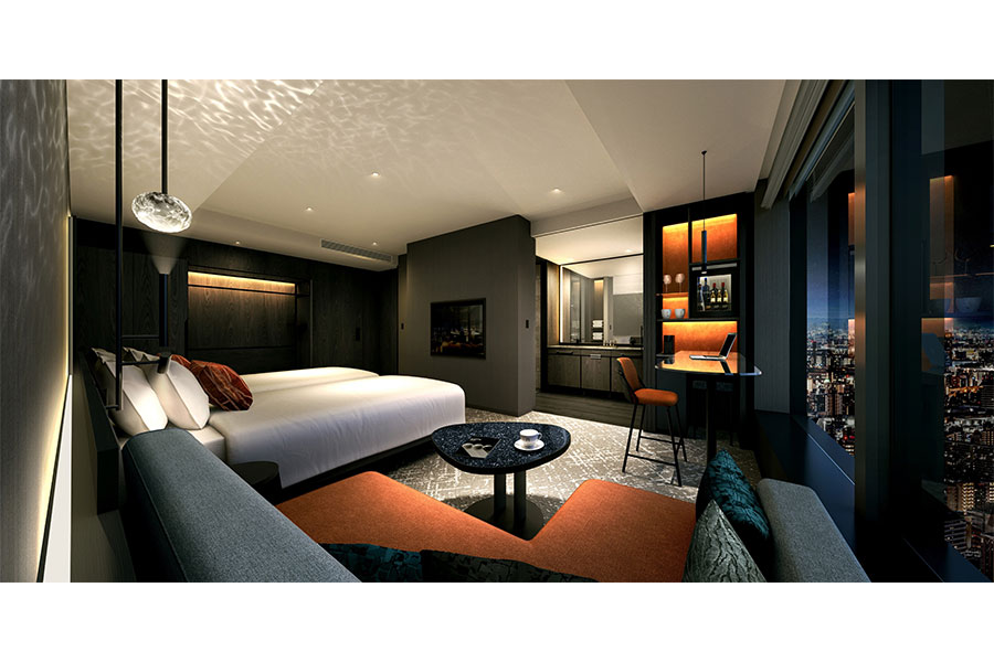 客室は「ザ・ゲートホテル」ブランド最大の 223室を有し、大阪の中心地でありながら、安らげる空間を創出。地上約 120m の最上階には、大阪の景色を一望できるルーフトップバーを設置するほか、ホテル館内にはレストランや宿泊者専用のラウンジ、フィットネスジムを備える。