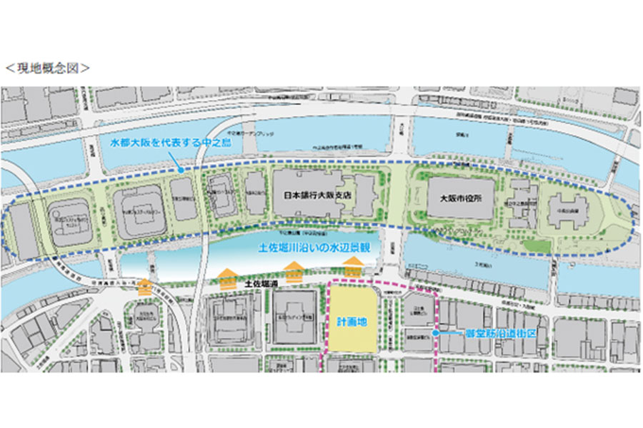 大阪メトロ御堂筋線・京阪本線「淀屋橋駅」に直結する複合ビル「淀屋橋ゲートタワー」が2026年に開業を予定。御堂筋と土佐堀川に挟まれた「大阪市中央区北浜四丁目」の一等地を対象とした再開発事業の一環で、老朽化した建物が点在していたエリアを一体化し、大阪都心のビジネス拠点の強化と都市景観の再生を目的としている。
