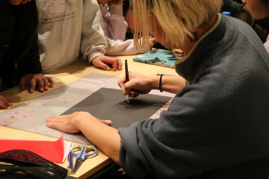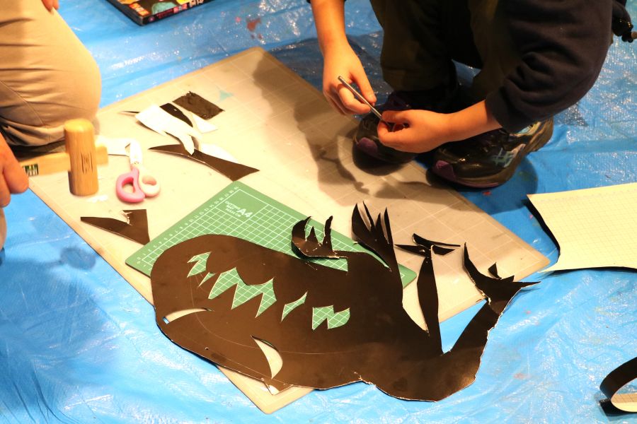 • 影絵ワークショップ「あらしのよるの生き物たちをつくろう!」参加者たちが、影絵の投影にチャレンジ(画像提供:新開地アートひろば)