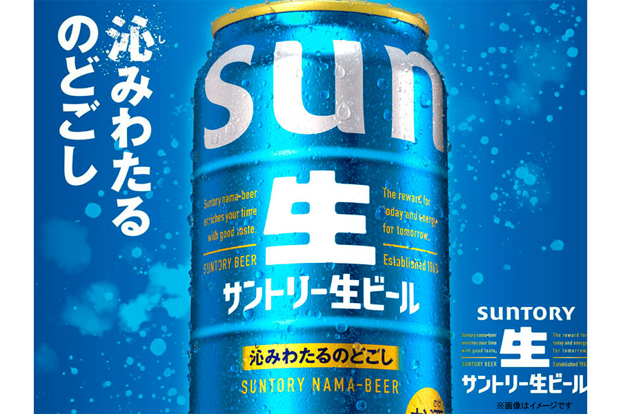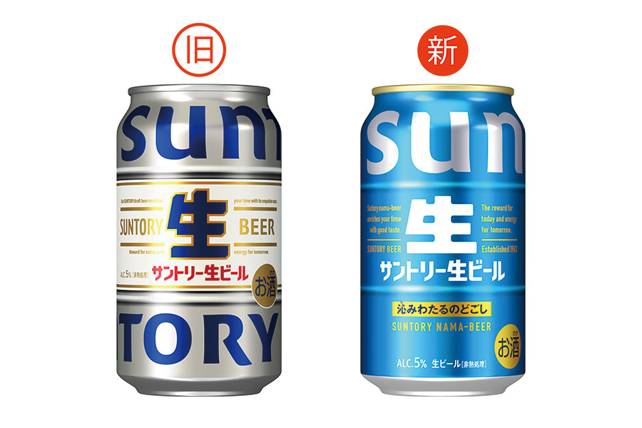 また「サントリー生ビール」は、「ザ・プレミアム・モルツ」同様、ベースカラーを一新。サン生の爽快さを体現する「コンフォートブルー※1」を採用し、ロゴ部分の「生」部分は生ビールの泡を想起させる白色に変更し、訴求を強化した。