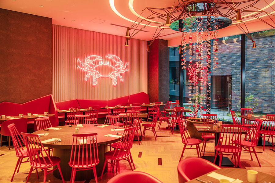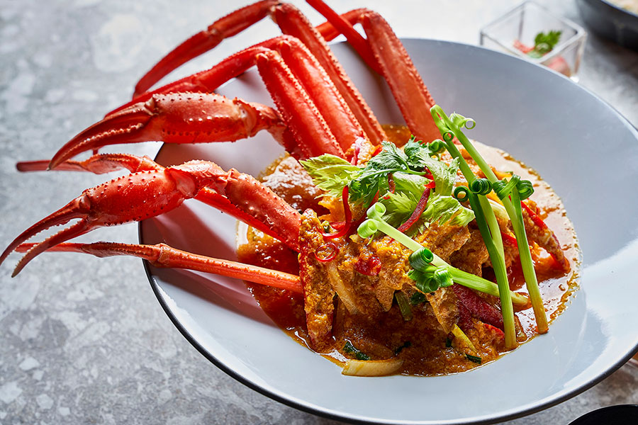 タイ発祥のホテルというだけあって、タイでも高価なカニ入りカレー「プーパッポンカレー」が食べ放題。加えて、本ズワイ蟹を“蒸し”“焼き”2つのスタイルで食べ比べできる。カニに合わせるのは、定番の三杯酢以外に、スイートチリソースなどタイらしい調味料もあり、味変のバリエーションが無限だ。