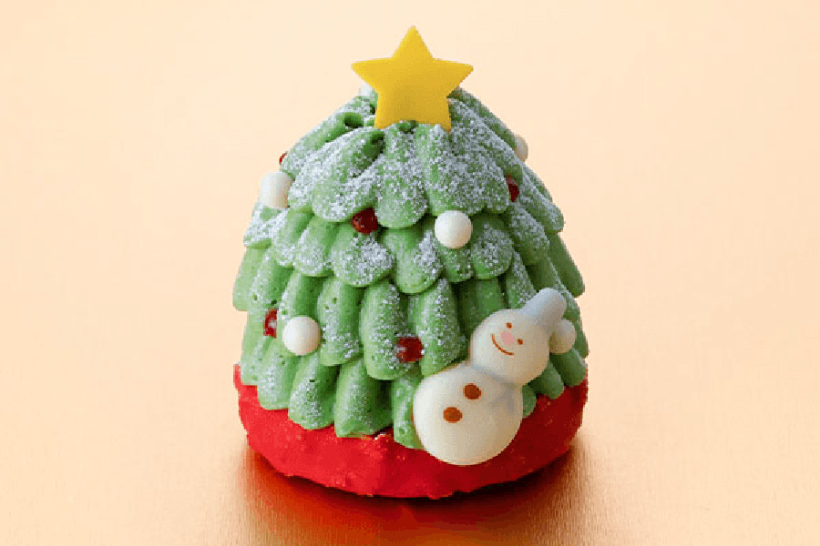 • 「マールブランシュ」のきらめく星のハッピーツリー(864円)。濃厚なピスタチオクリームをやさしくしぼり、かわいいツリーに