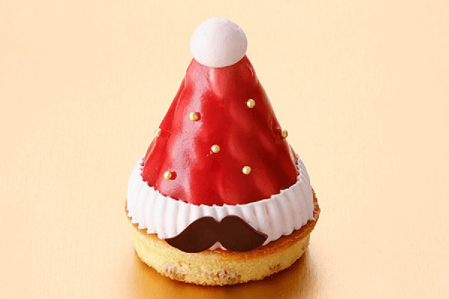 • 「マールブランシュ」のベリーベリーサンタハット(864円)。くるみ入りの生地の上に、甘酸っぱいラズベリーのムースとゼリーを重ね、生クリームを合わせる