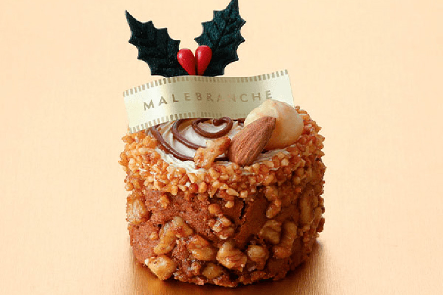 • 「マールブランシュ」のサンタの森のきり株(864円)。バニラクリームと生キャラメルをナッツたっぷりの生地で包み、森のきり株をイメージ