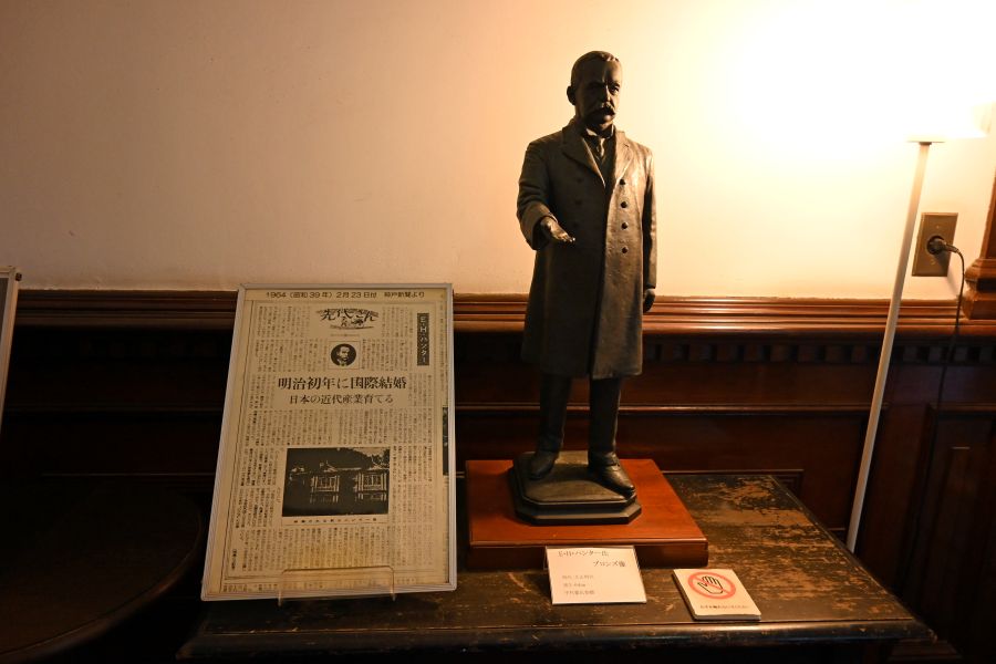 • 「旧ハンター住宅」に展示、エドワード・ハズレット・ハンター氏の像(12月20日撮影)