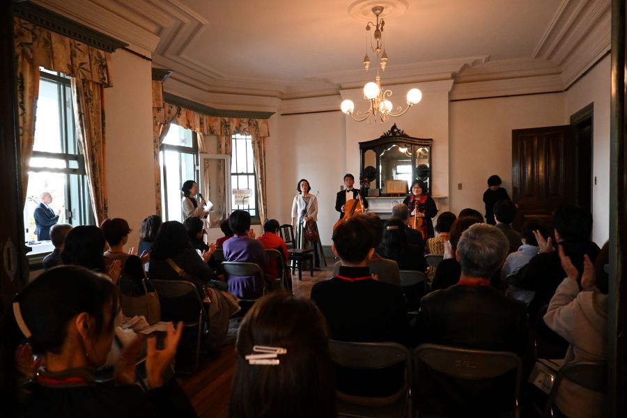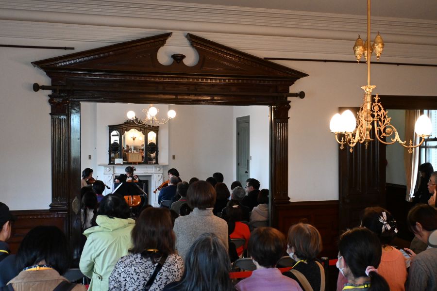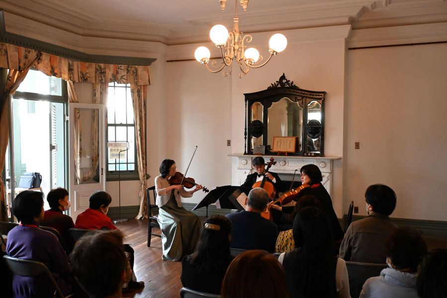 • 「旧ハンター住宅」クロージングイベントでヴァイオリン、ヴィオラ、チェロによるクラシック音楽の演奏が披露された(12月20日撮影)