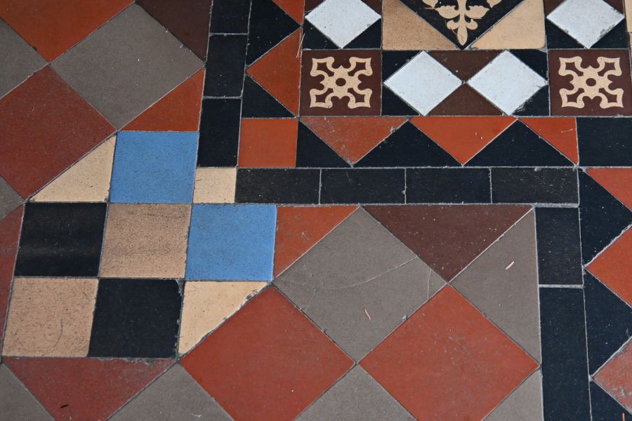 • 「旧ハンター住宅」の玄関タイル(12月20日撮影)