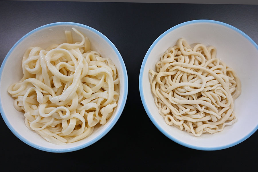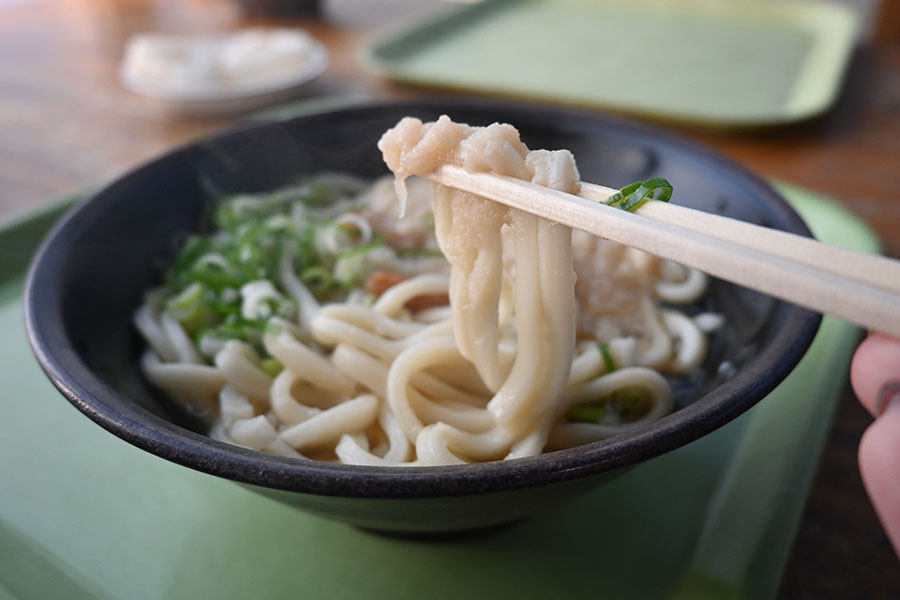 同じく九州の福岡でも、うどんはやわ麺が主流です。これは福岡の商人町や小倉の製鉄所など、かつて労働者たちが多く集まっていた町でうどん文化が発展したため、同じくやわ麺が発展したのかなと。讃岐うどんのように固くこねたものではなく「多加水麺」という水を多めに入れた麺を使っているお店が多いんです。