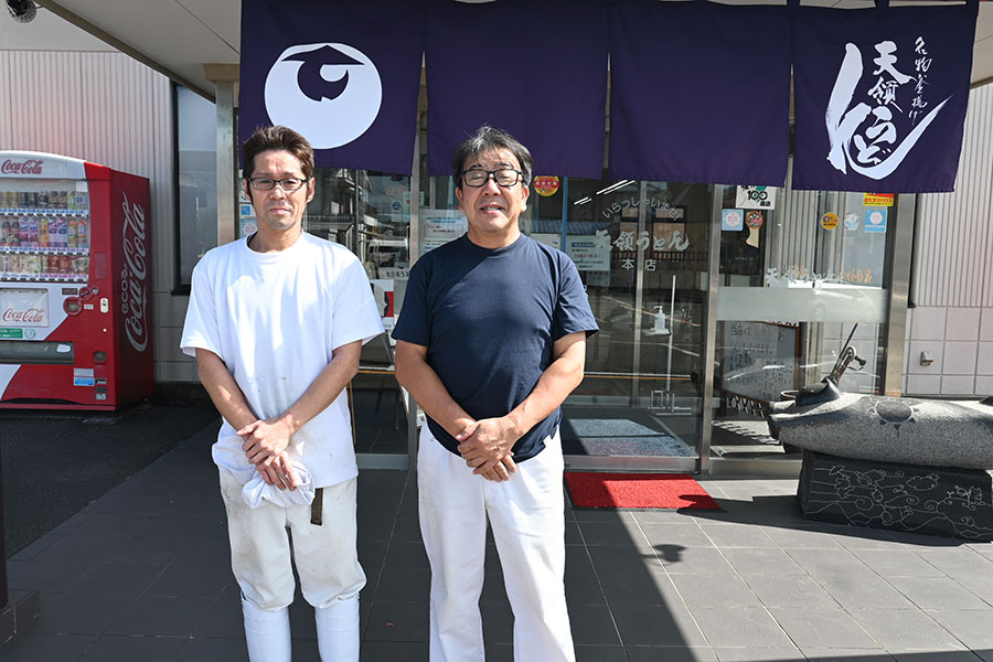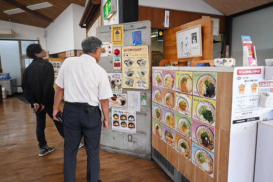 2代目・田崎澄さんによると持ち帰りを目的に訪れる人も多いようで、お店の入口にもテイクアウトセットが購入できる自動販売機も設置されている。いかに「天領うどん」が地元に根付いているかがうかがえた。