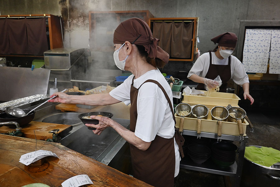 開店当初からメニューは一切変わることなく、釜揚げうどんがメイン。女将の「茹でたてを食べてほしい」という思いから、注文を受けて生麺から茹でるようにしているため提供されるまで約15分だ。