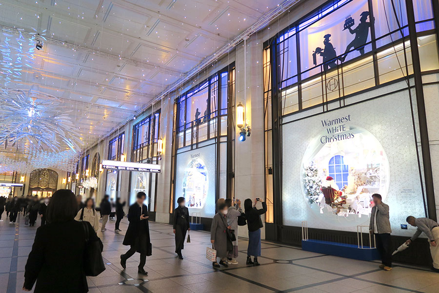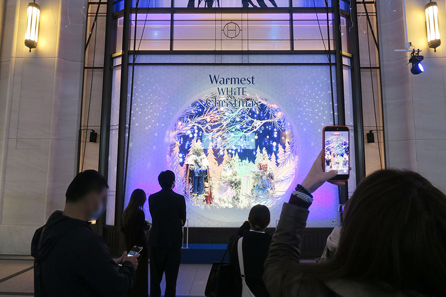 「阪急うめだ本店」のコンコースウィンドーがクリスマス仕様に。思わず足を止め、撮影を楽しむ人々(Lmaga.jp撮影)