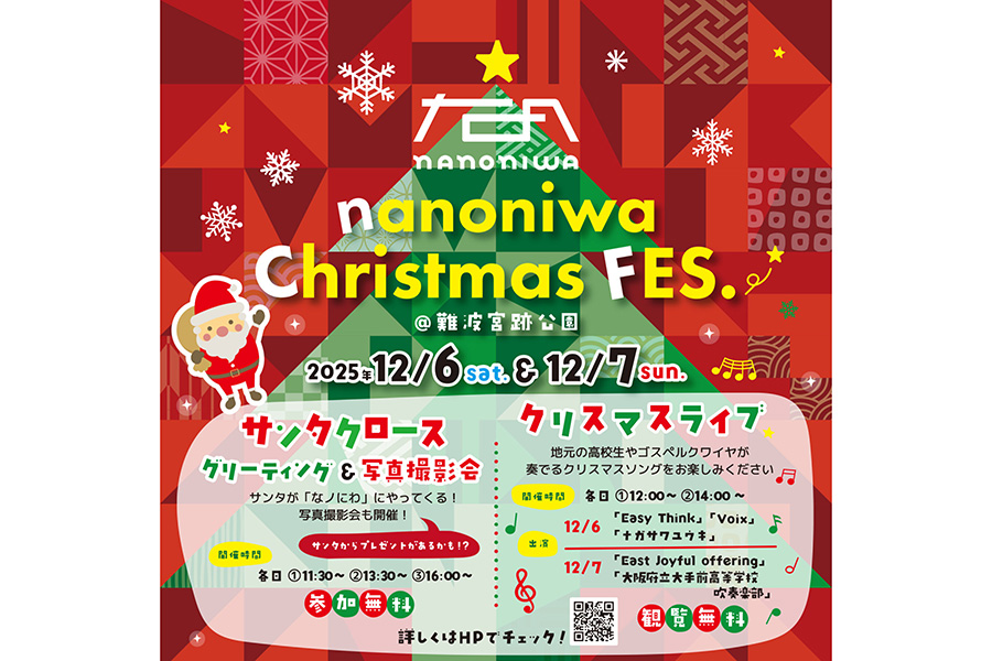今年3月に開業した史跡公園「難波宮跡公園(なにわのみやあとこうえん)」(大阪市中央区)にある商業施設「なノにわ」にて、12月6日より2日間限定で『クリスマスフェス』が開催される。