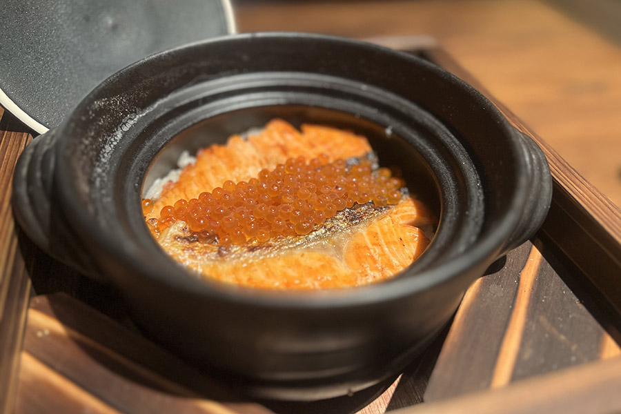 そして、新社屋の1階に、9月27日開店した「炊きたて土鍋ごはん OMOYA 八代目儀兵衛」も、海外での重要な一手に。祇園の米料亭よりもカジュアルに、ランチの御膳(1780円~)では、1人ひと釜、たっぷりと1合で白ごはんを提供。そのごはんを炊くのが、今回のために開発した業界初となる、20分で炊き上げる土鍋と炊飯方式だ。