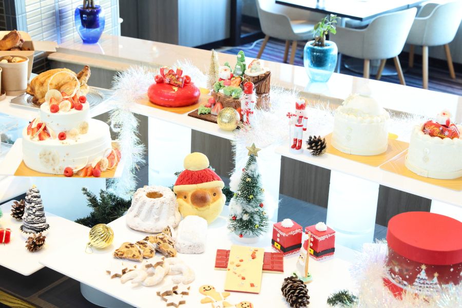 クリスマスケーキの予約期間は、12月24日(受取日の前日AM10時まで)。受け取りは、12月1日~19日まで6F 「スイスグルメ」にて。12月20日~25日はホテル内特設会場にて(10時~19時)あわせて店頭販売も12月15日から25日まで実施する。