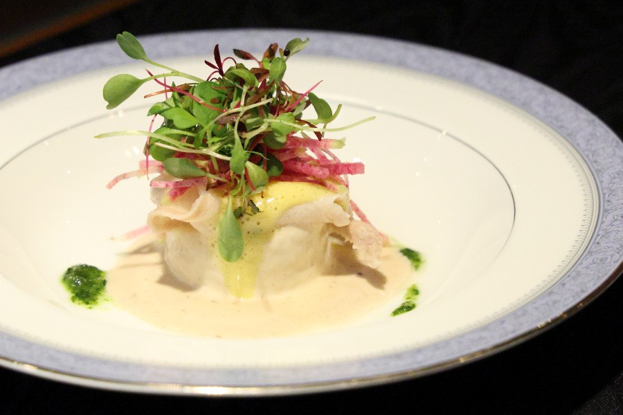 • 「シェフ渾身のひと皿」の「豚ロースのポッシェと大根のポルチーニクリーム ソースベアルネーズ」