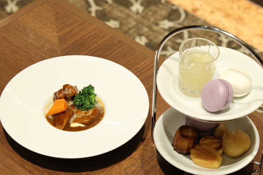 • 「ビーフシチュー」、バニラ&ブルーベリーの「マカロン」と「洋梨ゼリー」