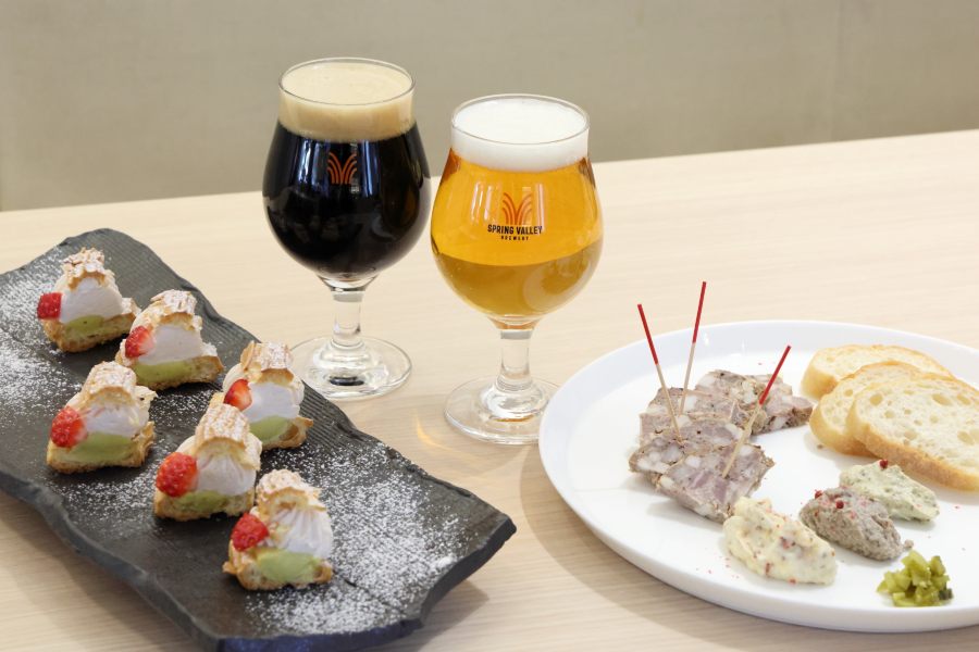 • クラフトビールとの相性も◎「パテ・ド・カンパーニュ」は「JAPANエール 香」と。「苺とピスタチオのパリ・ブレスト)は、「アフターダーク〈黒〉」とぜひ。(クラフトビール含む「アルコール飲み放題」は+1800円で楽しめる)