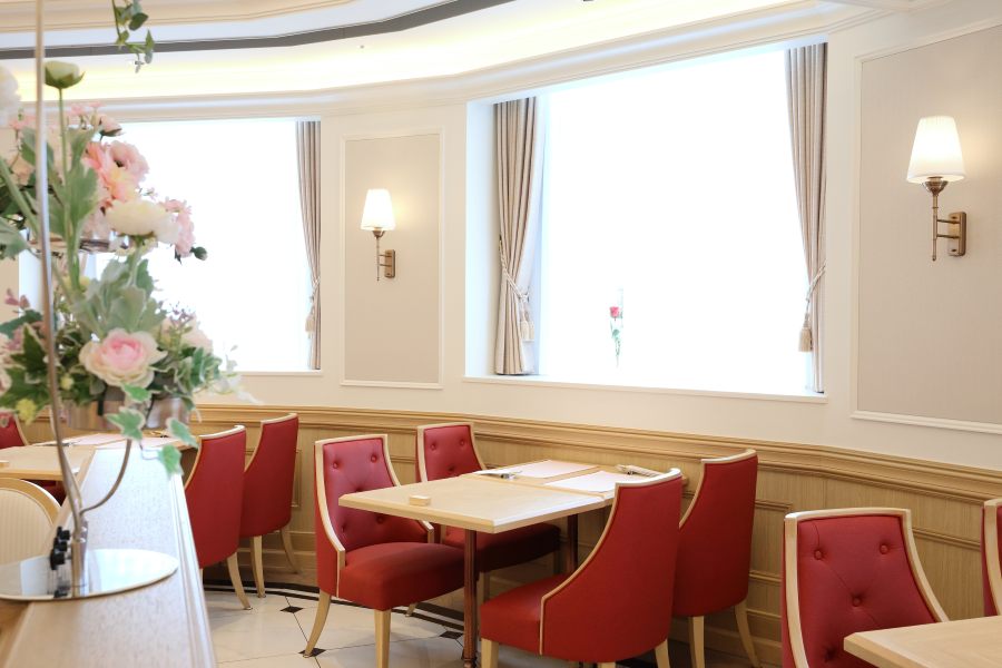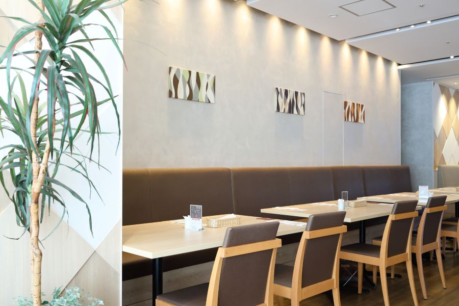 • 約190席の広々とした店内。ライブキッチンでのシェフたちとの会話を楽しむゲストも多く、気兼ねなく何度も料理を取りに行けそう