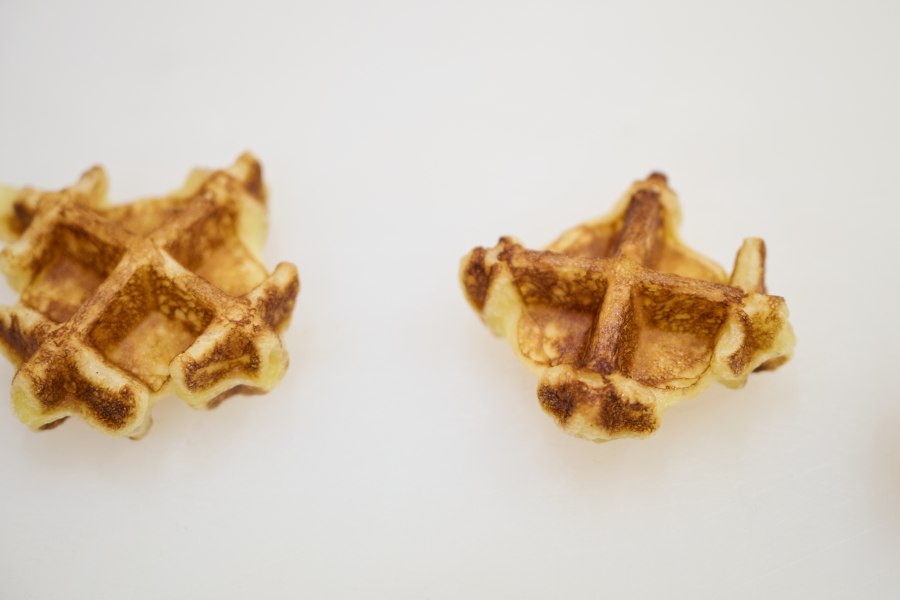 まずは、煮詰めすぎない、フレッシュ感あるいちごのソースを用意。次に、林シェフが長年愛用している焼き機で「ゴーフル」を焼き上げます。「ゴーフルというと神戸では風月堂が有名だけど、このゴーフルは英語で言うワッフルみたいな、フランスのお菓子です」と林シェフ。
