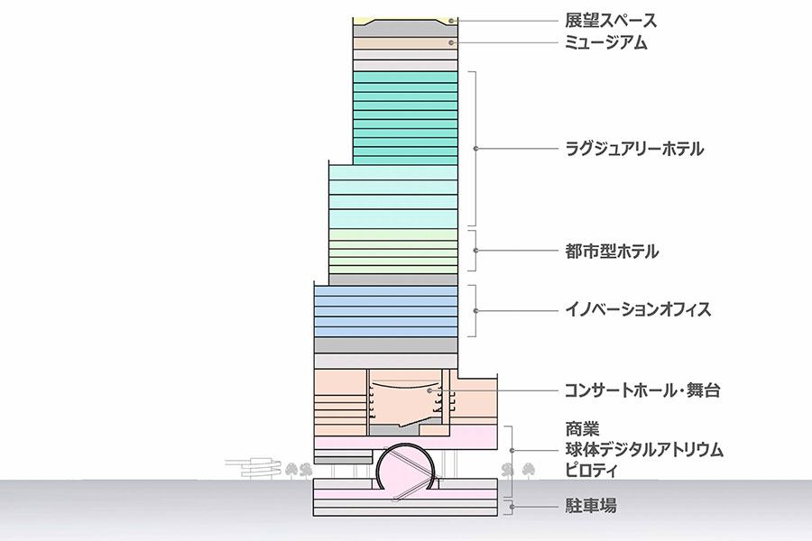 • 【(仮称)大阪マルビル建替プロジェクト】地下から低層階の断面図イメージ