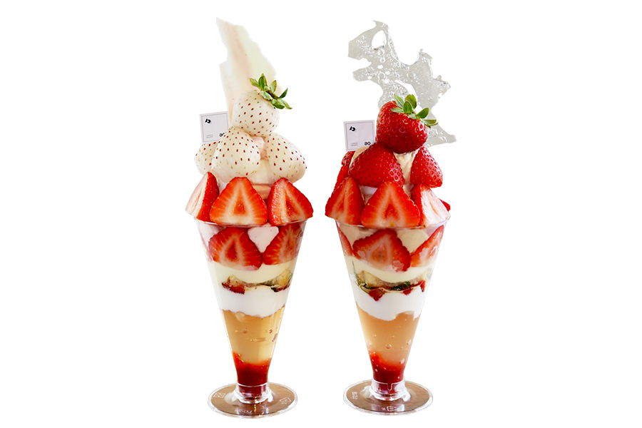 • 左から「アオコーヒー&ギャラリー」の白いちごのフロマージュパフェ(1人前2420円、各日販売予定数30)、アールグレイ香るいちごのパフェ(1人前1870円)