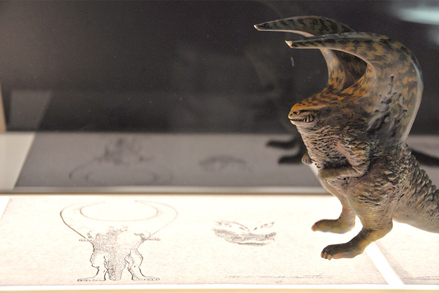 • 巨匠・成田亨がデザインした怪獣「クラッシュホーン」のフィギュアとデザイン画(Lmaga.jp撮影)