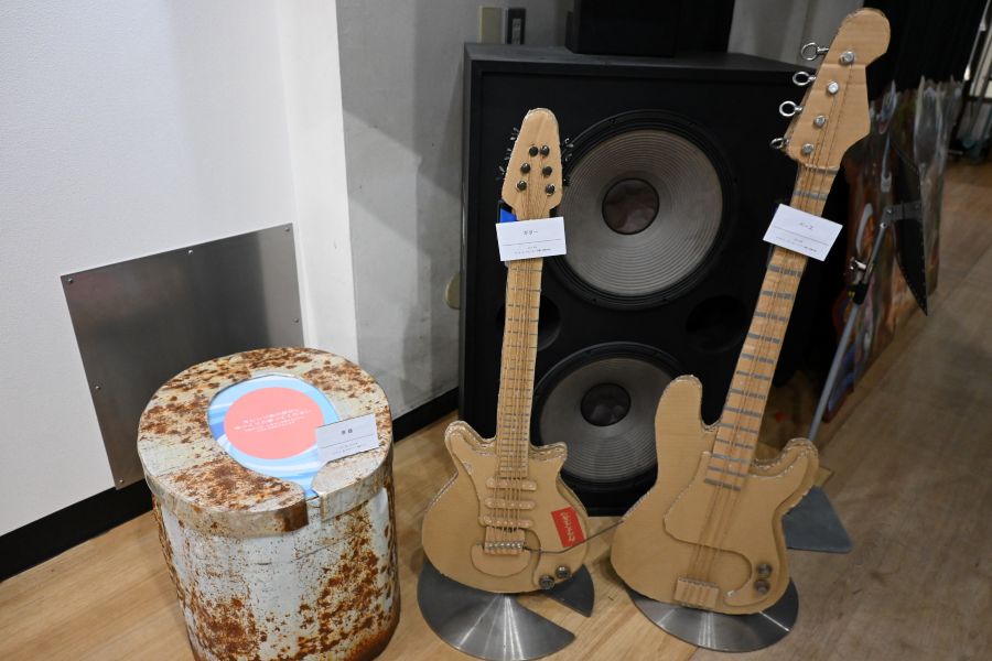 なお、同館ではもはやお馴染みの段ボールアートについて「ミサイルとか戦車とか、物騒なもの作ってほしいと言うオーダー、多いですね。そういう作品多いので」と、制作の中心となっているスタッフは話す。また、音楽映画も多数上映するため、ギターやベースなども活躍の機会が多く、過去には本格ドラムセットを作ったことも。
