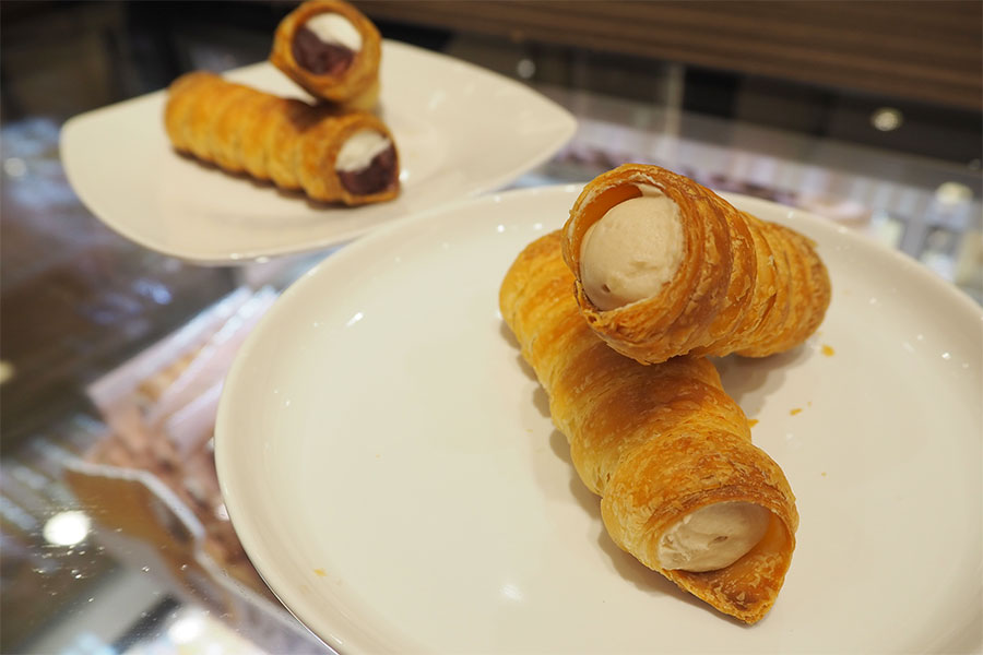 • 「りんごコルネ」(1本・350円)が関西初登場。特製りんごクリームはシナモンが効いた白あんベース