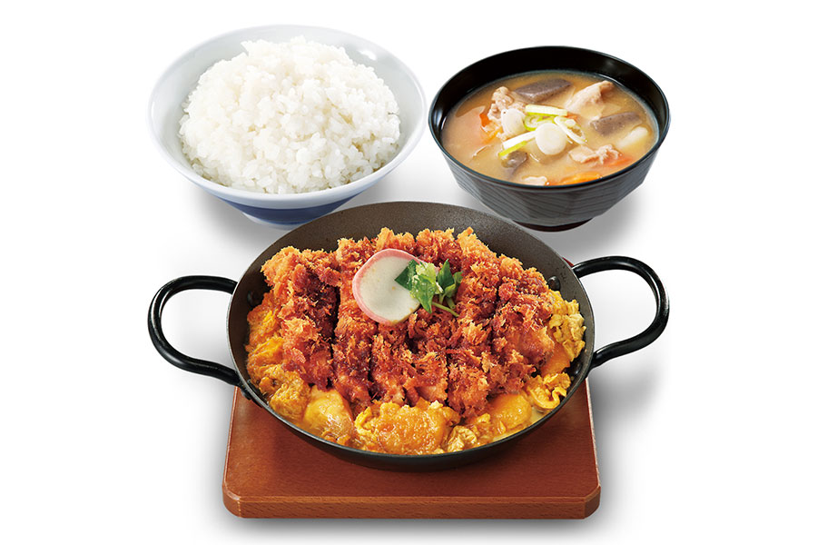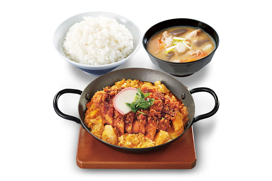 • かつや「出汁醤油カツ on the 親子鍋定食(梅)」(1089円〜)