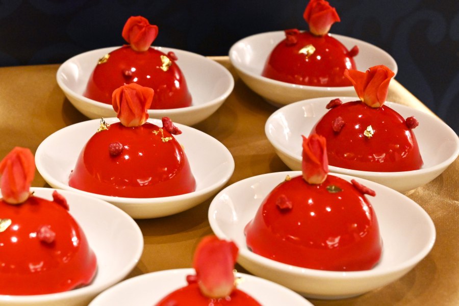 また、ファッションアイコンとして常に注目されていたアントワネットを意識した、フリルやジュエリーがデザインに取り入れられた空間に並ぶ「いちご色のドレス」「シャトー・ド・ヴェルサイユ」をはじめとした4種のメインスイーツにも注目。マドレーヌやシャルロットといったフランスのスイーツのほか、オレンジや生姜、ゴマ、赤紫蘇、桜などがいちごと組み合わせた創作系スイーツもビジュアル、食感ともに楽しい。