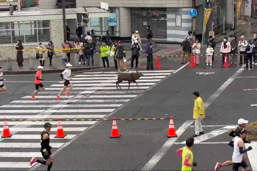 奈良マラソンに鹿も参加…!?「負けじと走る姿が愛おしい」「奈良すぎる光景」
