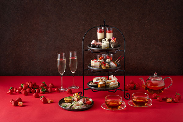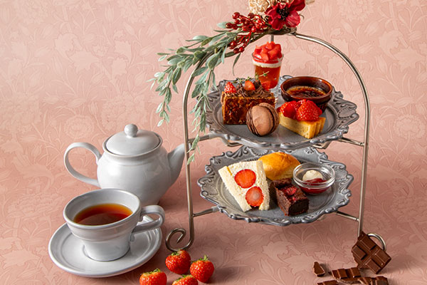 3種のチーズを使用した「ブルーチーズと胡桃のチーズケーキ」や、酸味と甘みの絶妙なバランスを楽しむ「ミルクチョコと苺のムース」など、旬のいちごと芳醇なショコラをテーマに、冬の味覚を楽しめるスイーツがずらり。ハーバーランドの景色を望みながら優雅なひとときを。