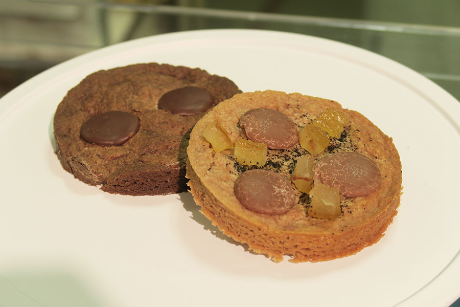 【実演】「チャンククッキー(塩柚子ショコラ)」(1個・501円)※大阪高島屋限定、「ショコラ・メープルフィナンシェ」(1個・391円)※1月限定