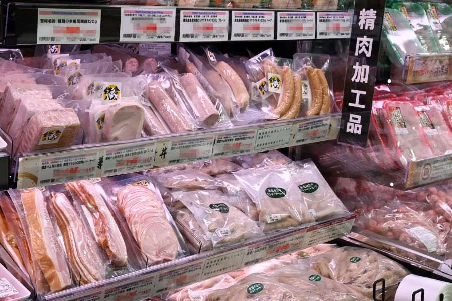 だが上記以外は、少し印象が異なる。たとえば牛肉は肉質等級4または5に格付けされた黒毛和牛を「1頭単位で買い付け」、冷凍で入荷した干物は冷凍のまま、新鮮な近郊の魚や肉の仕入れ、発色剤を使用していないソーセージやハムを「無塩せき」と表記して積極的に並べる(発色剤を使用している商品には「発色剤使用」と明記)など。