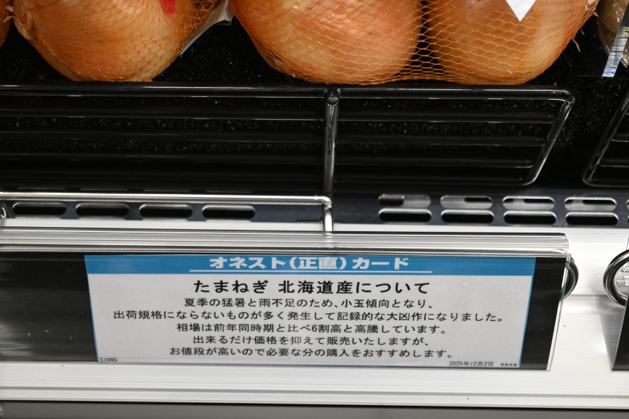 そのほか、生鮮食品も大量に陳列して前面に推ししているものが安いほか、同社のウリでもある、「天候不順で香りが薄め」などと安さの理由を正直に書いた「オネスト(正直)カード」がついた商品も価格が低いことがある。(逆に「オネスト(正直)カード」には、その商品の価格が高い理由が記載されていることもある)