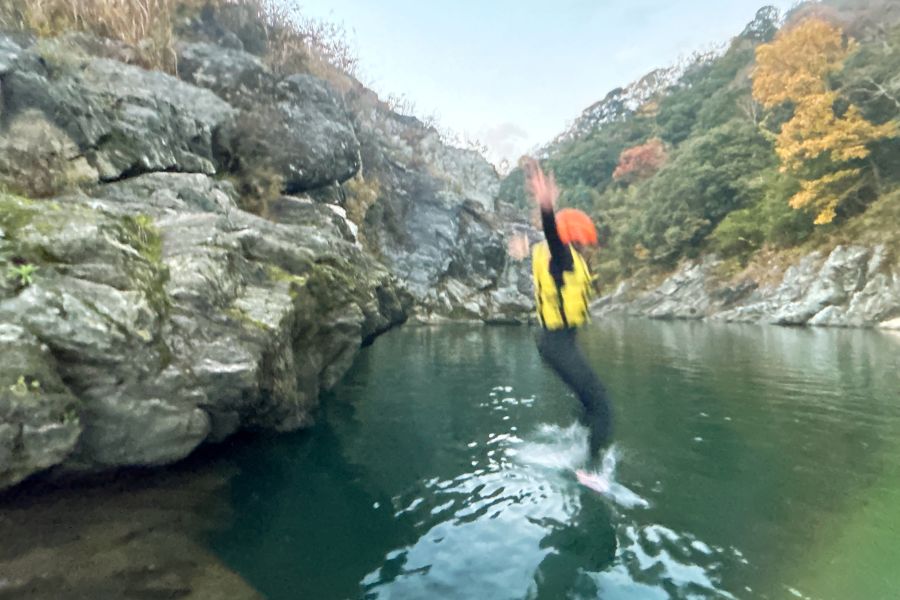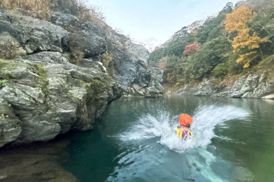 逆に「川に落ちたい!」という人は、流れのゆるやかなゾーンでぷかぷか浮いたり、岩場から川にドボンと飛び込む、といったチャレンジで自然と一体になれる。自分のペースで、川遊びを満喫しよう。