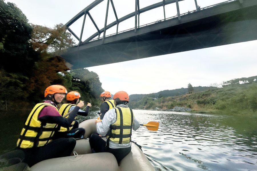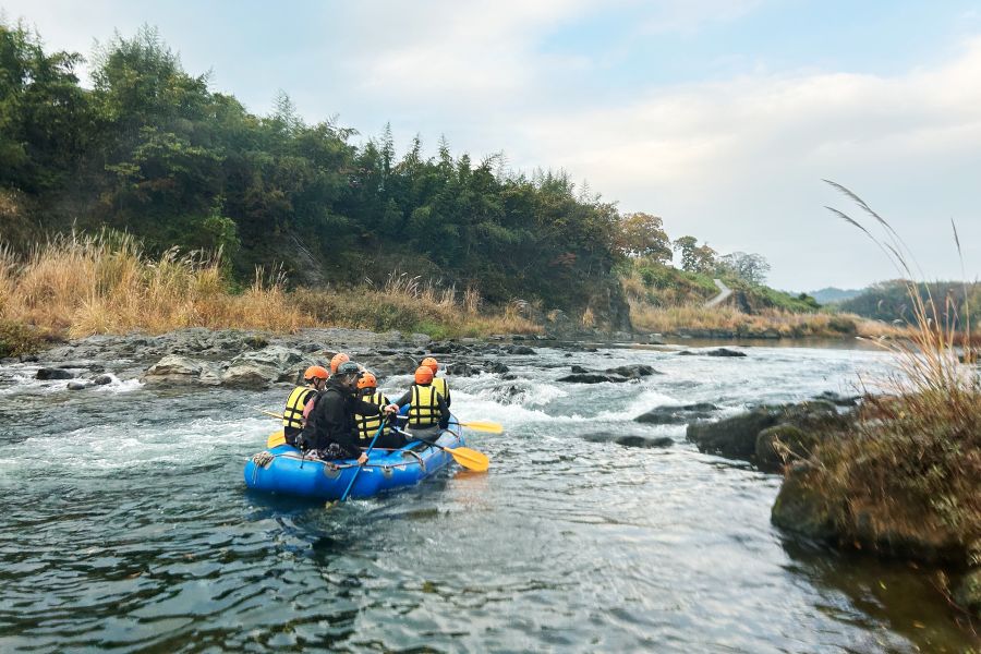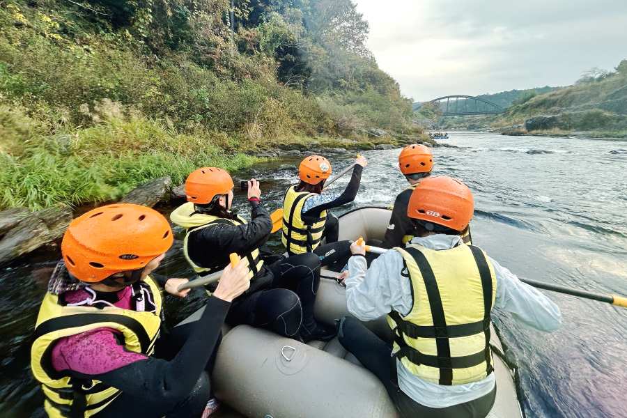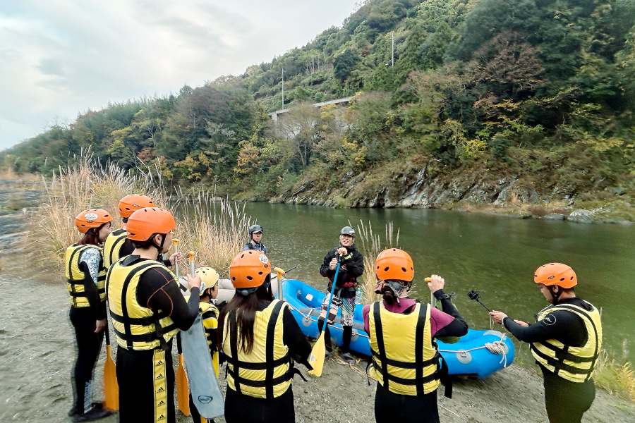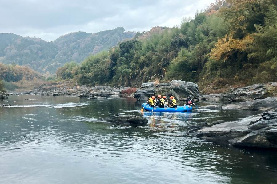秋のラフティング体験は静かで、紅葉する木々も美しく幻想的。水にドボンするにはちょっと寒いけど、この季節ならではの「ゆったりラフティング」が満喫できる。次は、水量の多い夏に訪れて、いろいろな季節の吉野川を楽しんでみたいなぁ。