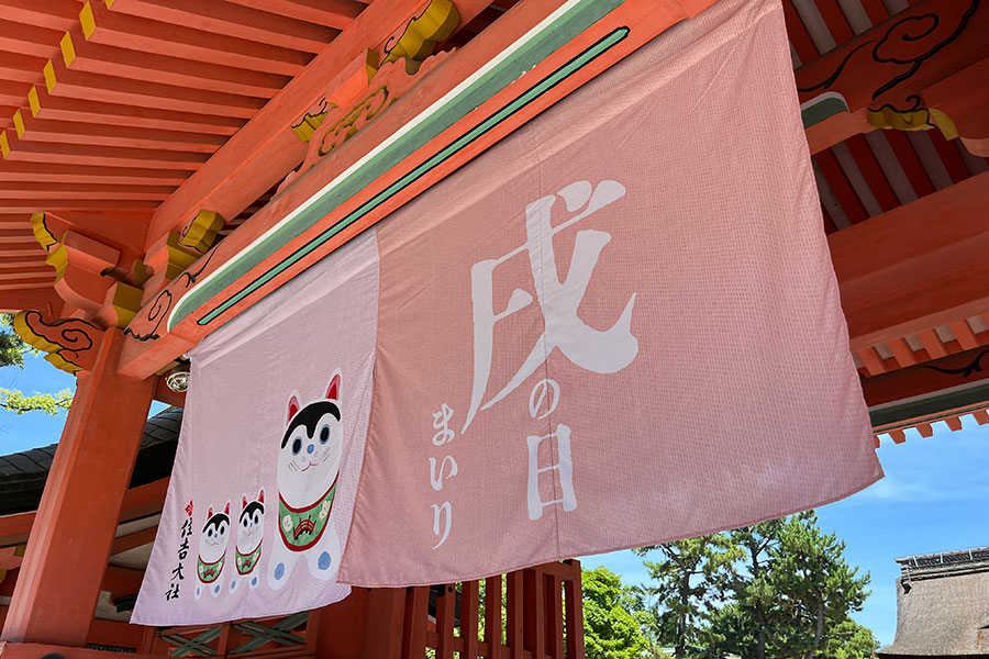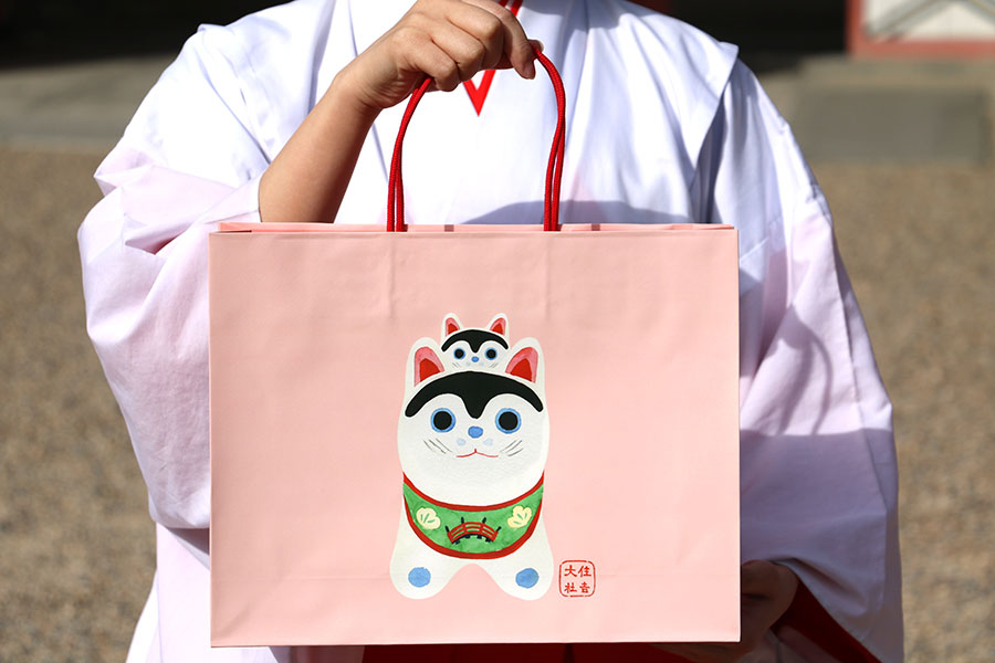 猫が主役のポスターやパッケージ、干支をモチーフにした看板や暖簾・・・。伝統的な神社の風景のなかで、思わず足を止めて見入ってしまう“かわいらしいデザイン”が、大阪を代表する神社のひとつ「住吉大社」(大阪市住吉区)で徐々に注目を集めはじめている。
