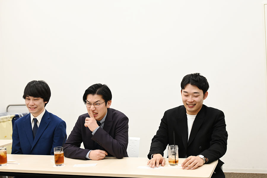 たっぺい:「3人でうまく漫才するのって、どうやってええんやろう」というのはたしかにあるかもしれません。そもそも日常でも、3人で一緒に喋るときはあまりない気がするんです。会話だいたい2人でして、その間、1人は聞いていたりするから。