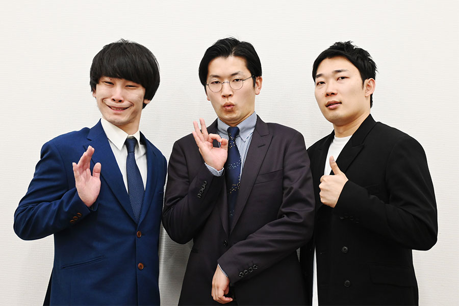 浦田:それぞれの役割みたいな部分は、今日のネタに関しては、割といつもの僕らに近い気がします。僕は普段からあんなやつですし、このふたりも近い感じがあります。そういう意味ではやりやすかったですけど、それでもやっぱり難しい。後輩の生姜猫の漫才を見て勉強しようかなって。生姜猫は同じトリオですけど、構成がすごいですよね。