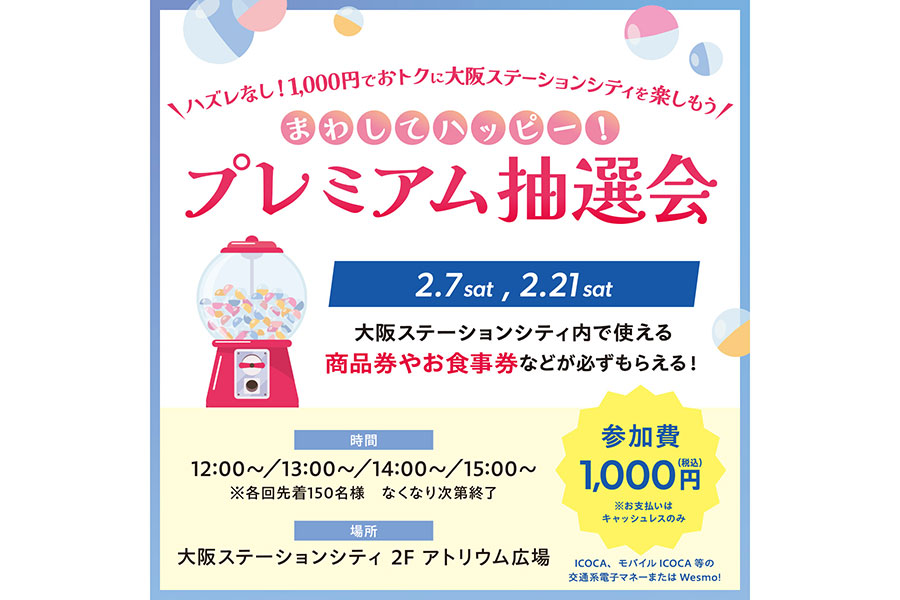 • JR大阪駅直結の複合商業施設「大阪ステーションシティ」で開催される『まわしてハッピー!プレミアム抽選会』詳細