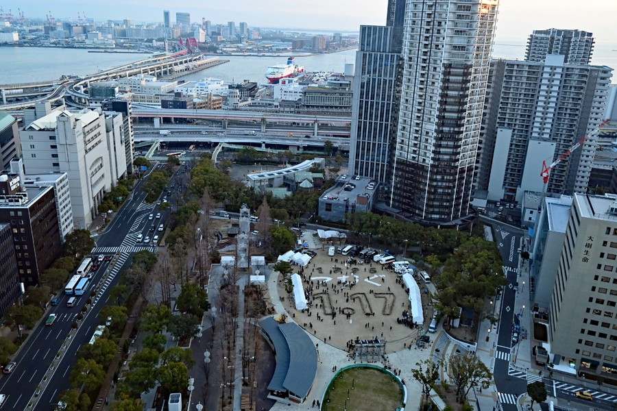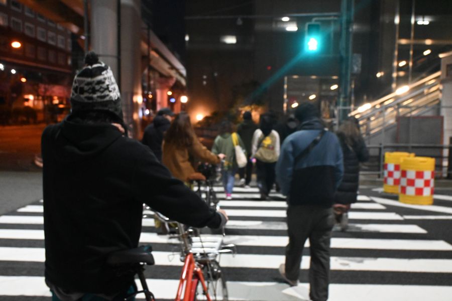 • 『満月の夕』を一晩歌い踊り続けたと参加者みんなで連れだって徒歩で東遊園地へ(2025年1月17日/東遊園地 Lmaga.jp編集部撮影)