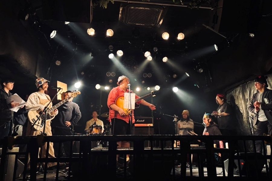 • ライブハウス「太陽と虎」3つのステージで順に『満月の夕』を歌い継ぐアーティストたち。風次園長お手製スープ「ふう汁」の振る舞いやラジオ関西「風次・村上のうずまき菅におじゃまします」のオンエアーも