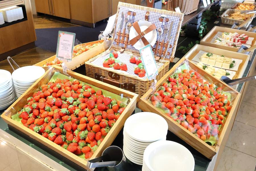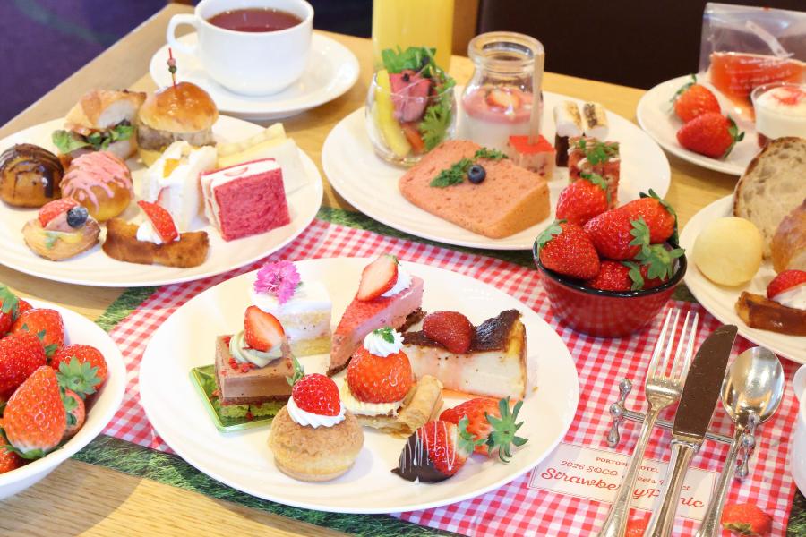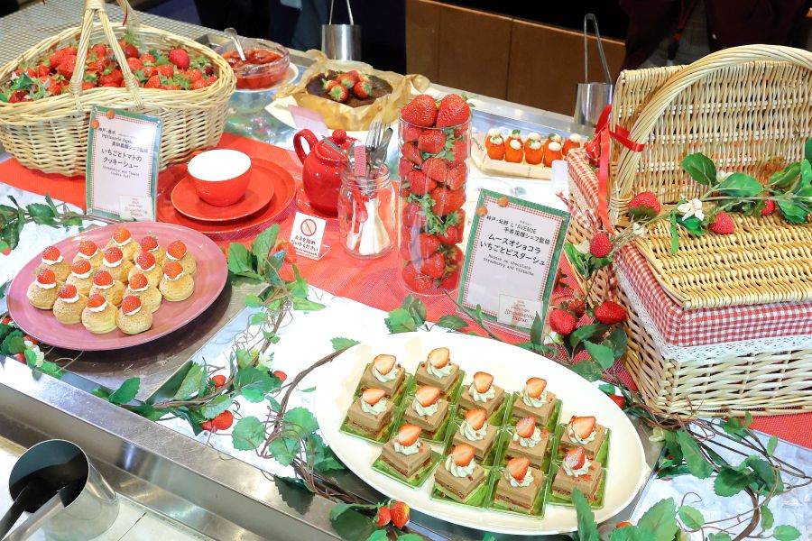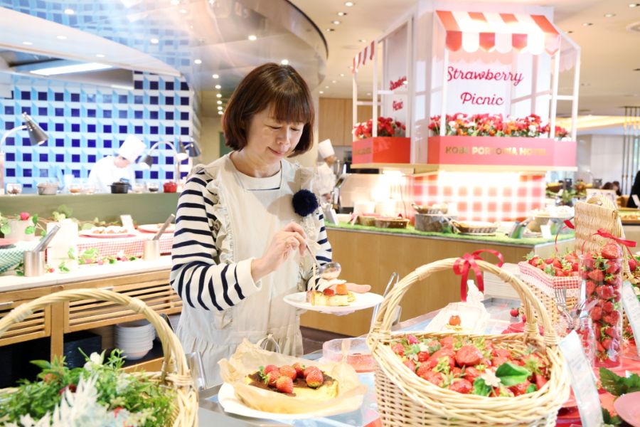 旬のいちごを使ったスイーツと、生の国産いちごが食べ放題で、毎年人気の「神戸ポートピアホテル」(神戸市中央区)のいちごビュッフェが5月6日まで開催中。