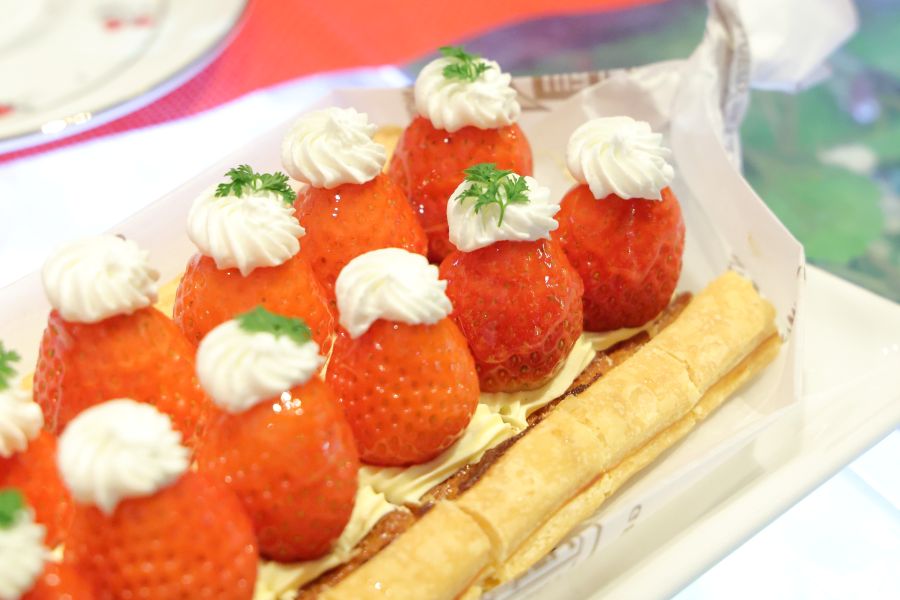 2月28日までは、「パティスリー アグリコール」(神戸市垂水区)の奥田義勝シェフ監修の「いちごとトマトのクッキーシュー」。3月1日から5月6日までは、「ラヴニュー」(神戸市中央区)の平井茂雄シェフ監修の「ムースオショコラ いちごとピスターシュ」がスペシャルスイーツとして期間限定で登場する。