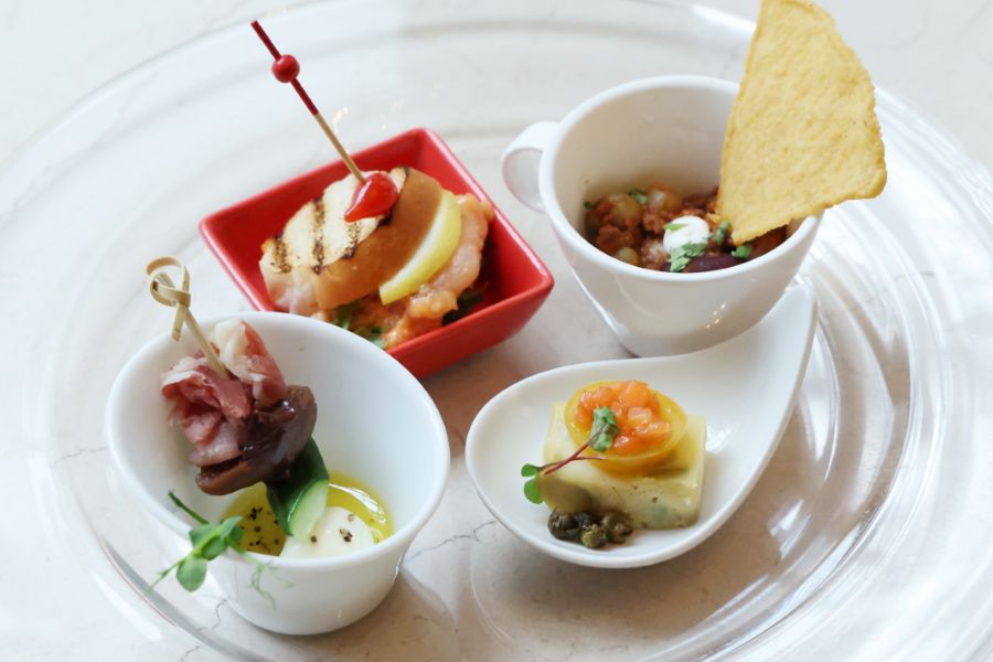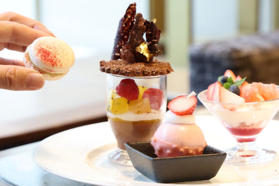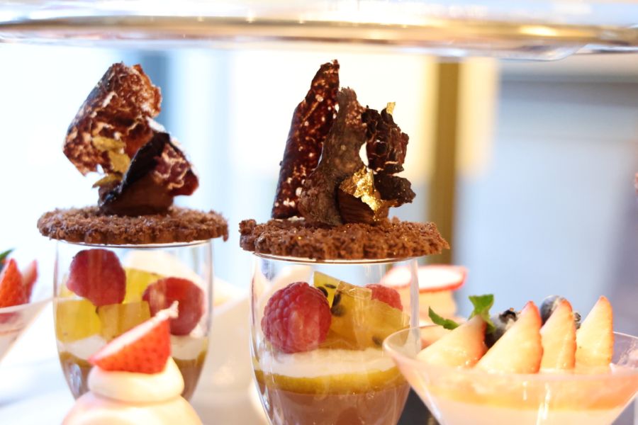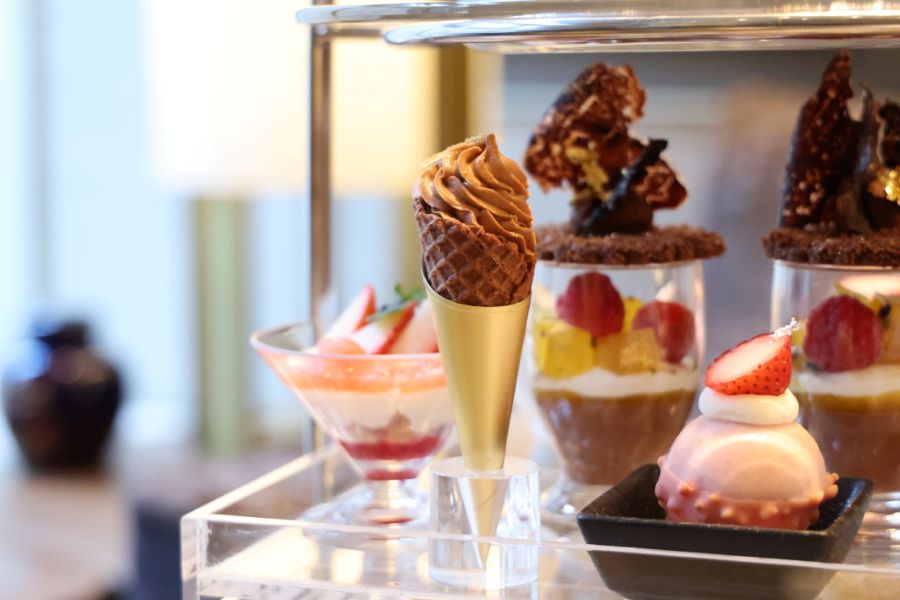 気になるドリンクは、オーダー制のコーヒーのほか、紅茶の聖地・スリランカの人気ブランド「ディルマ」の最高級ライン「ティーメーカー・シリーズ」の複数の銘柄がポットで並ぶ飲み放題。日本で唯一同ホテルで楽しめる、貴重な紅茶とともに、「リンツチョコレート」のスイーツ、セイヴォリーを堪能できる。